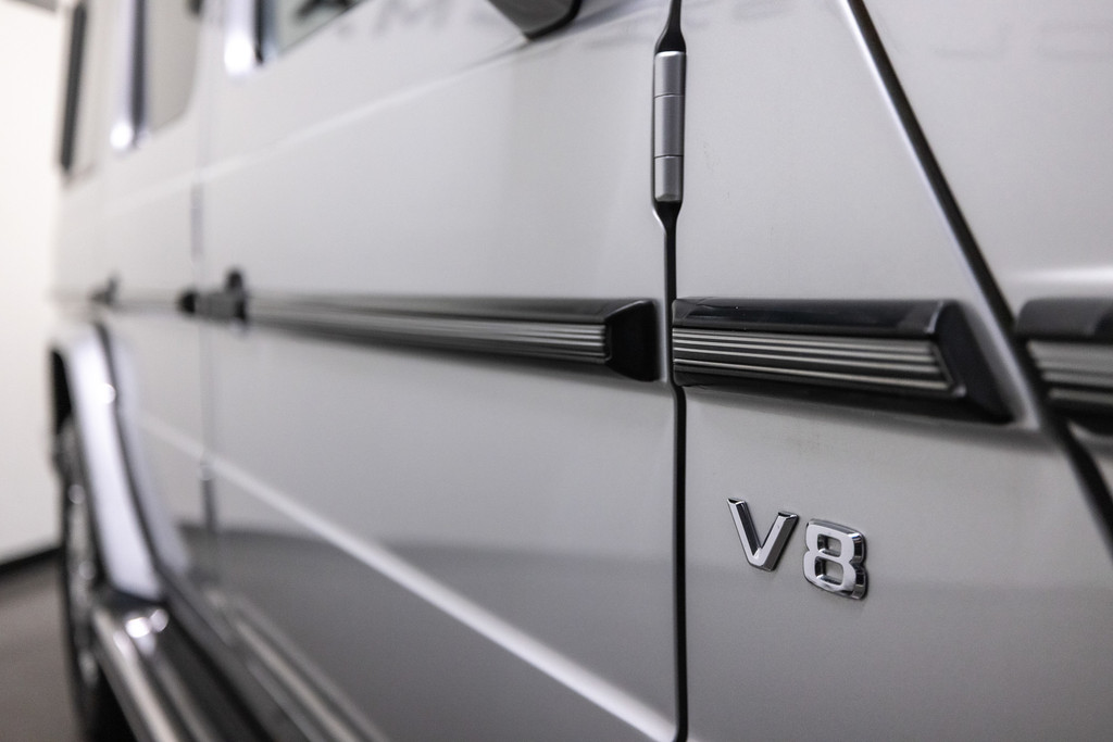 Originele Mercedes-Benz G-klasse 500 Lang uit 2004 te koop aangeboden. Deze Mercedes G500 heeft slechts 73.769 kilometer op de teller! Het zilverkleurig lakwerk verkeert in een schitterende staat. Het origineel zwart lederen interieur verkeert eveneens in een perfecte staat. De Mercedes G500 is geheel roestvrij en is voorzien van vrijwel alle mogelijke opties af fabriek. Deze Mercedes-Benz G-klasse 500 Lang is zeer goed onderhouden en komt met haar originele service boekjes. De Mercedes G500 is Bijtellingsvriendelijk (fiscale waarde € 22.000,-!) en de 21% BTW is verrekenbaar voor bedrijven!