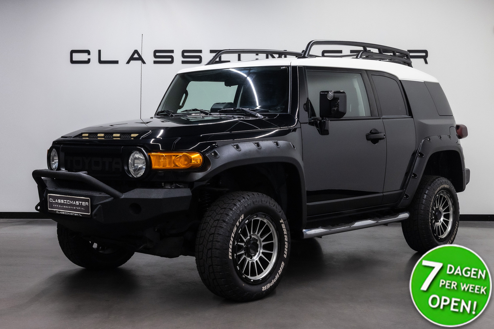 Originele Toyota FJ Cruiser V6 VVT-i uit 2007 te koop aangeboden. Deze Toyota FJ Cruiser V6 VVT-i heeft slechts 90.232 Miles op de teller! Het zwart kleurig lakwerk verkeert in een schitterende staat. Het interieur verkeert eveneens in een zeer nette staat. Deze Toyota FJ Cruiser V6 VVT-i is zeer goed onderhouden. De Toyota FJ Cruiser V6 VVT-i is Bijtellingsvriendelijk en de 21% BTW is verrekenbaar voor bedrijven!