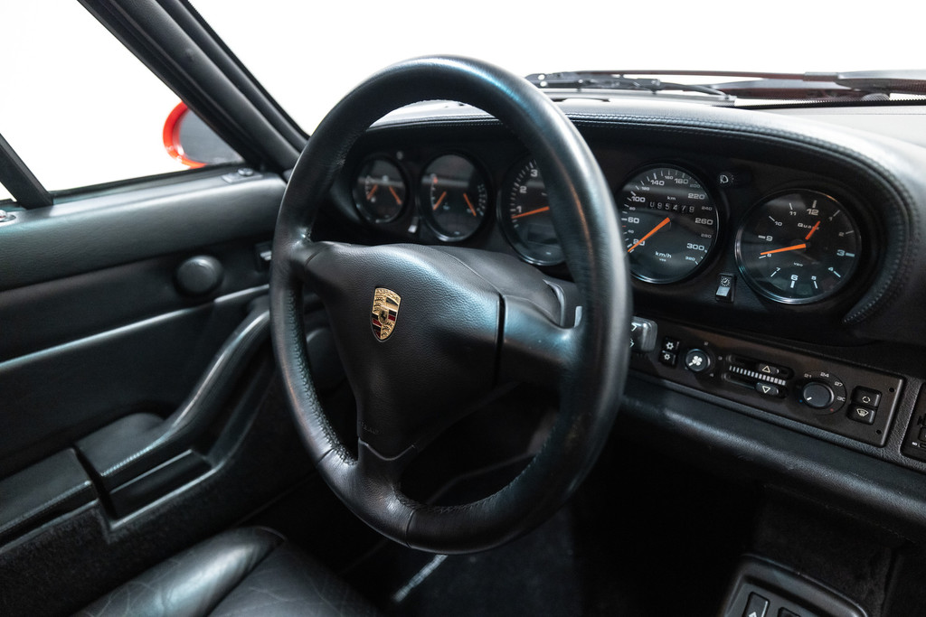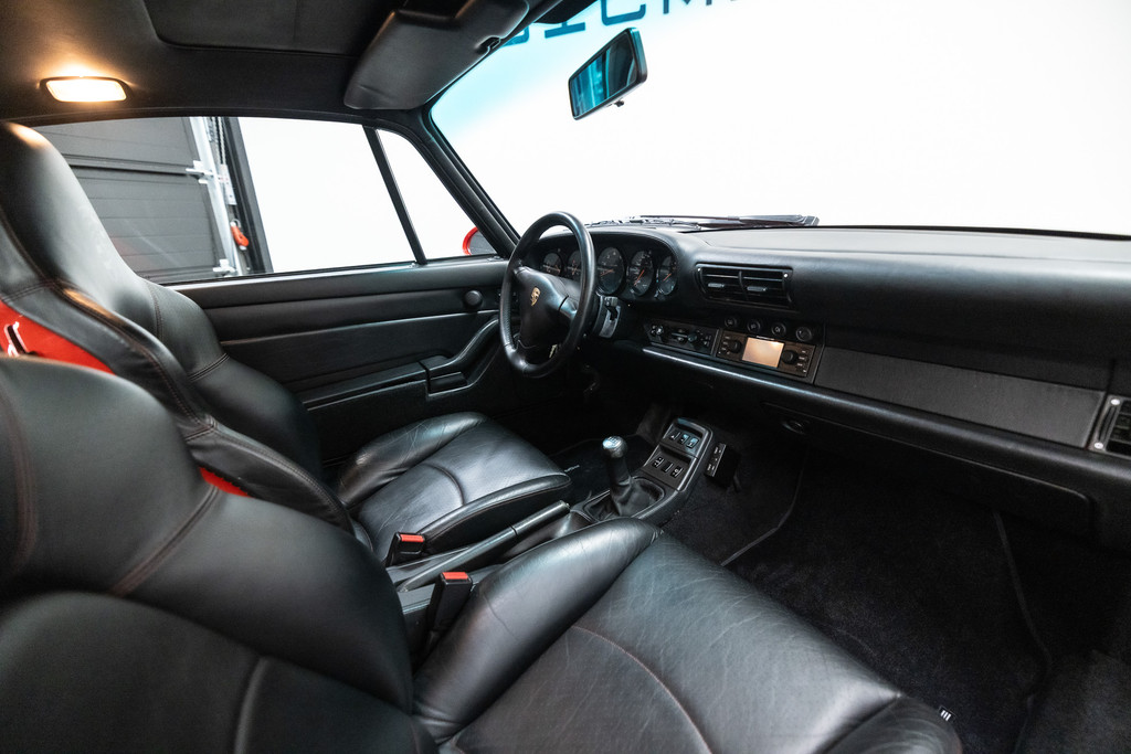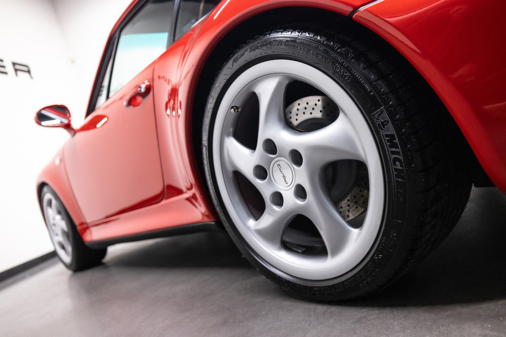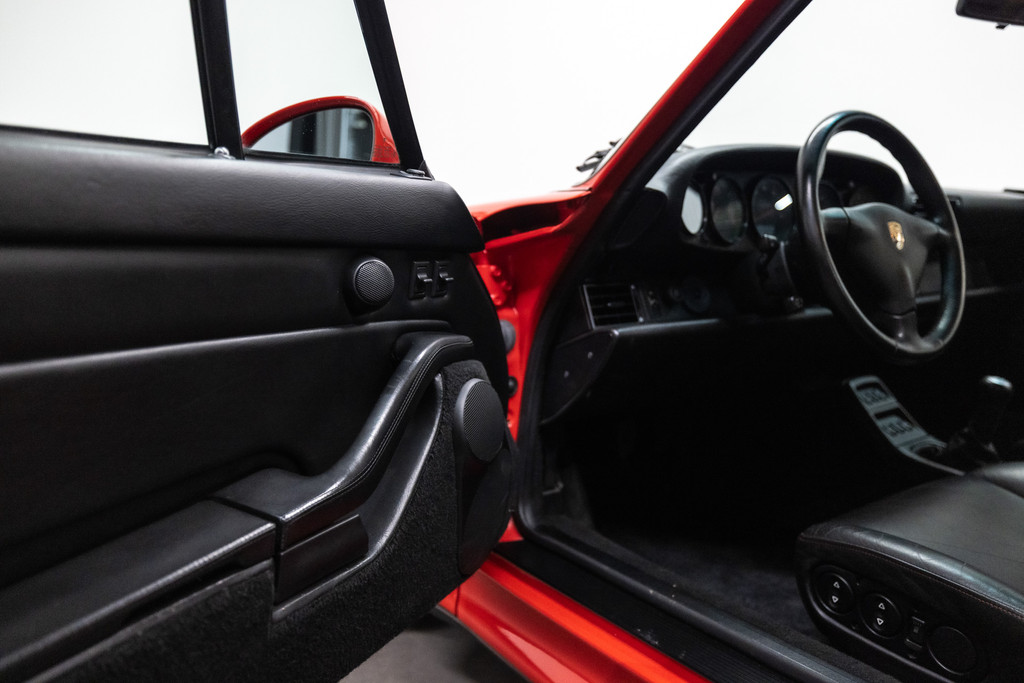 Zeldzame Porsche 993 Turbo uit 1996 te koop aangeboden. Deze Porsche 993 Turbo heeft slechts 95.479 kilometer op de teller! Het rood kleurig lakwerk verkeert in een schitterende staat. Het origineel zwart lederen interieur beschikt over de unieke Turbo Cup zetels. De Porsche 993 Turbo is met haar historie geheel kloppend van A tot Z en is afkomstig van de Porsche dealer!