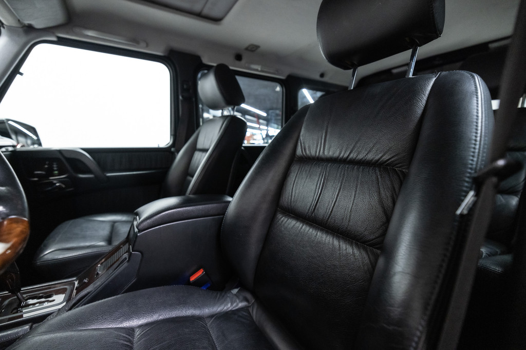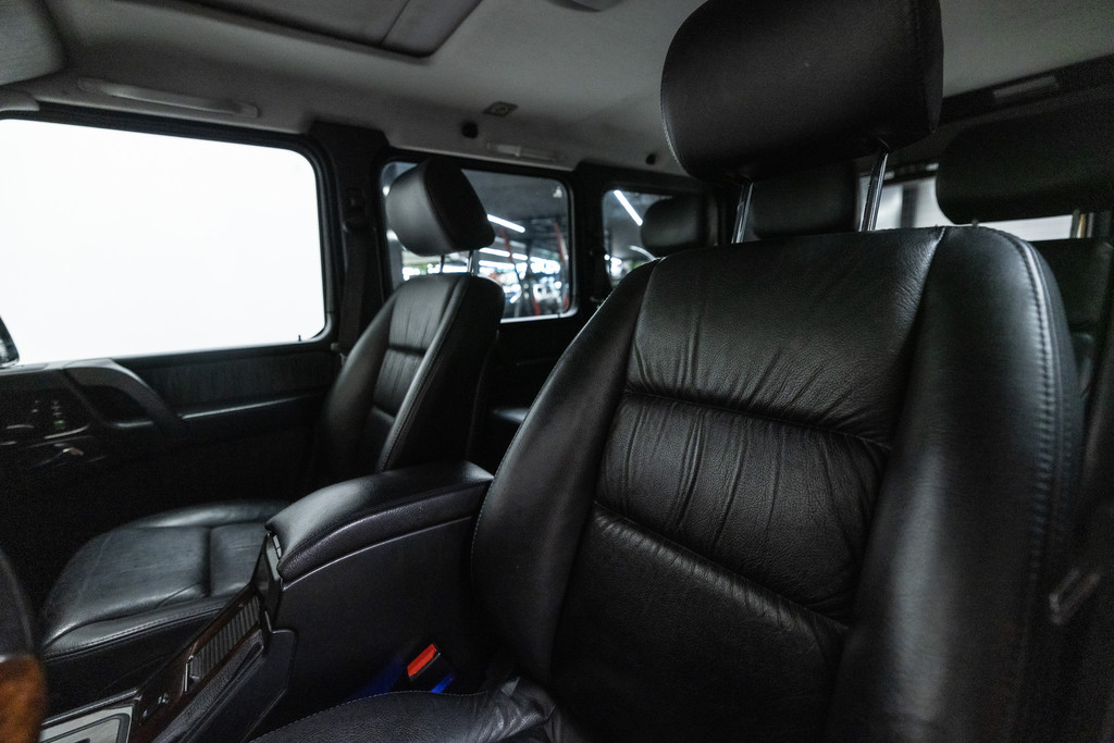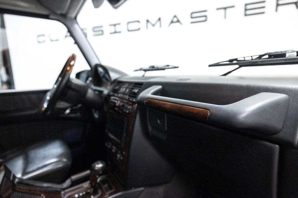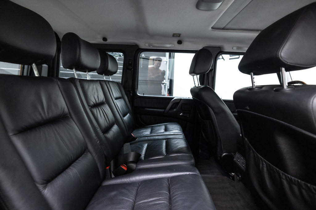 Originele Mercedes-Benz G-klasse 500 met G63 AMG Pakket uit 2003 te koop aangeboden. Het zwart kleurig lakwerk verkeert in een nette staat. Het origineel zwart lederen interieur verkeert eveneens in een nettestaat. De Mercedes G500 met G63 AMG Pakket is geheel roestvrij en is voorzien van vrijwel alle mogelijke opties af fabriek. Deze Mercedes-Benz G-klasse 500 met G63 AMG Pakket is zeer goed onderhouden en komt met haar originele service boekjes. De Mercedes G500 met G63 AMG Pakket is Bijtellingsvriendelijk (fiscale waarde € 22.000,-!) en de 21% BTW is verrekenbaar voor bedrijven!