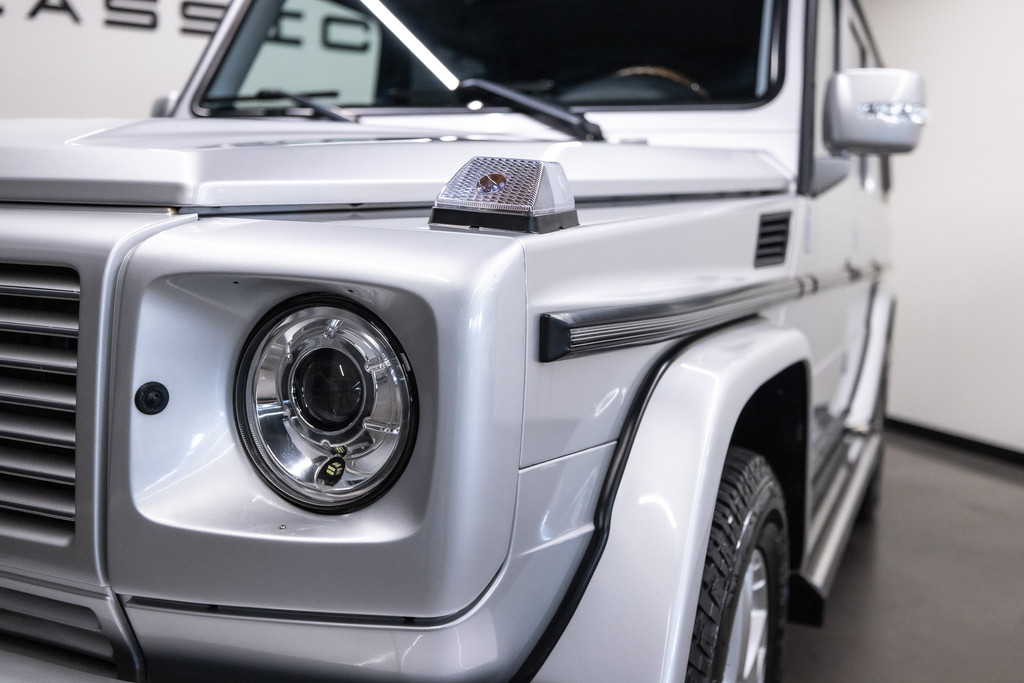Originele Mercedes-Benz G-klasse 500 Lang uit 2004 te koop aangeboden. Deze Mercedes G500 heeft slechts 73.769 kilometer op de teller! Het zilverkleurig lakwerk verkeert in een schitterende staat. Het origineel zwart lederen interieur verkeert eveneens in een perfecte staat. De Mercedes G500 is geheel roestvrij en is voorzien van vrijwel alle mogelijke opties af fabriek. Deze Mercedes-Benz G-klasse 500 Lang is zeer goed onderhouden en komt met haar originele service boekjes. De Mercedes G500 is Bijtellingsvriendelijk (fiscale waarde € 22.000,-!) en de 21% BTW is verrekenbaar voor bedrijven!