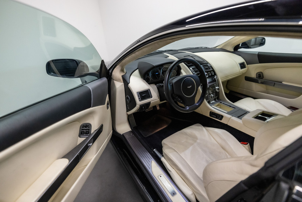 Originele unieke Aston Martin DB9 5.9 V12 Touchtronic uit 2009 te koop aangeboden. Deze Aston Martin DB9 5.9 V12 heeft slechts 39.325 kilometer op de teller! Het zwart kleurig lakwerk verkeert in een schitterende staat. Het origineel wit/beige lederen interieur verkeert eveneens in een perfecte staat. De Aston Martin DB9 5.9 V12 is geheel roestvrij en is voorzien van vrijwel alle mogelijke opties af fabriek. Deze Aston Martin DB9 5.9 V12 is zeer goed onderhouden en komt met haar originele service boekjes. De Aston Martin DB9 5.9 V12 is Bijtellingsvriendelijk (fiscale waarde € 22.000,-!) en de 21% BTW is verrekenbaar voor bedrijven!