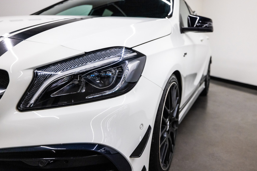 Mercedes-Benz A-klasse AMG 45 4MATIC uit 2016 te koop aangeboden. Deze Mercedes-Benz A-klasse AMG 45 4MATIC heeft slechts 45.545 kilometer op de teller! Het wit kleurig lakwerk verkeert in een schitterende staat. Het origineel zwart lederen interieur met schaalstoelen zetels verkeert eveneens in een perfecte staat. Deze Mercedes-Benz A-klasse AMG 45 4MATIC is zeer goed onderhouden en komt met haar originele service boekjes.