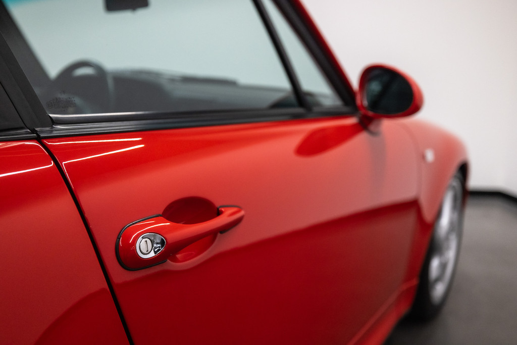 Zeldzame Porsche 993 Turbo uit 1996 te koop aangeboden. Deze Porsche 993 Turbo heeft slechts 95.479 kilometer op de teller! Het rood kleurig lakwerk verkeert in een schitterende staat. Het origineel zwart lederen interieur beschikt over de unieke Turbo Cup zetels. De Porsche 993 Turbo is met haar historie geheel kloppend van A tot Z en is afkomstig van de Porsche dealer!