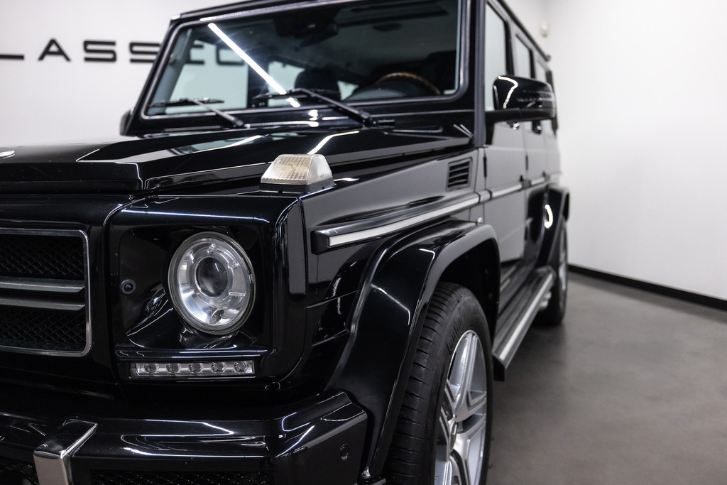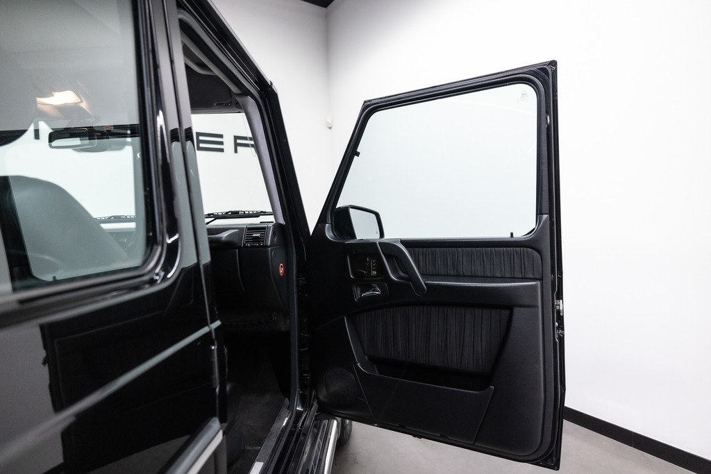 Originele Mercedes-Benz G-klasse 500 met G63 AMG Pakket uit 2003 te koop aangeboden. Het zwart kleurig lakwerk verkeert in een nette staat. Het origineel zwart lederen interieur verkeert eveneens in een nettestaat. De Mercedes G500 met G63 AMG Pakket is geheel roestvrij en is voorzien van vrijwel alle mogelijke opties af fabriek. Deze Mercedes-Benz G-klasse 500 met G63 AMG Pakket is zeer goed onderhouden en komt met haar originele service boekjes. De Mercedes G500 met G63 AMG Pakket is Bijtellingsvriendelijk (fiscale waarde € 22.000,-!) en de 21% BTW is verrekenbaar voor bedrijven!