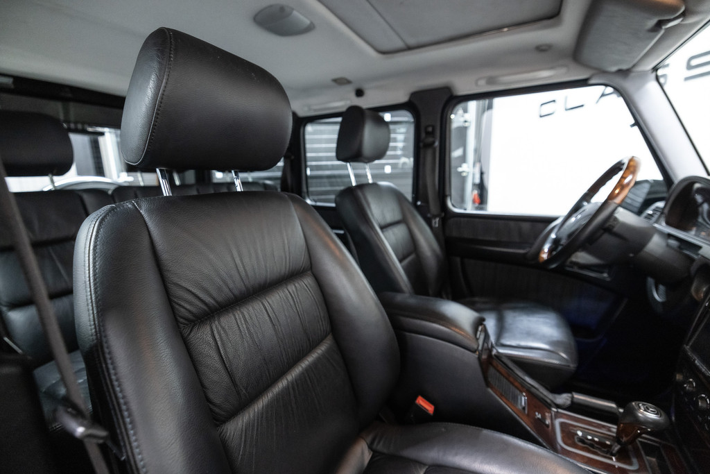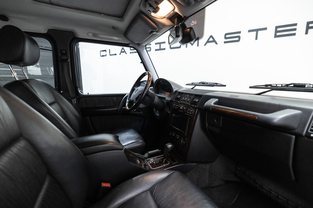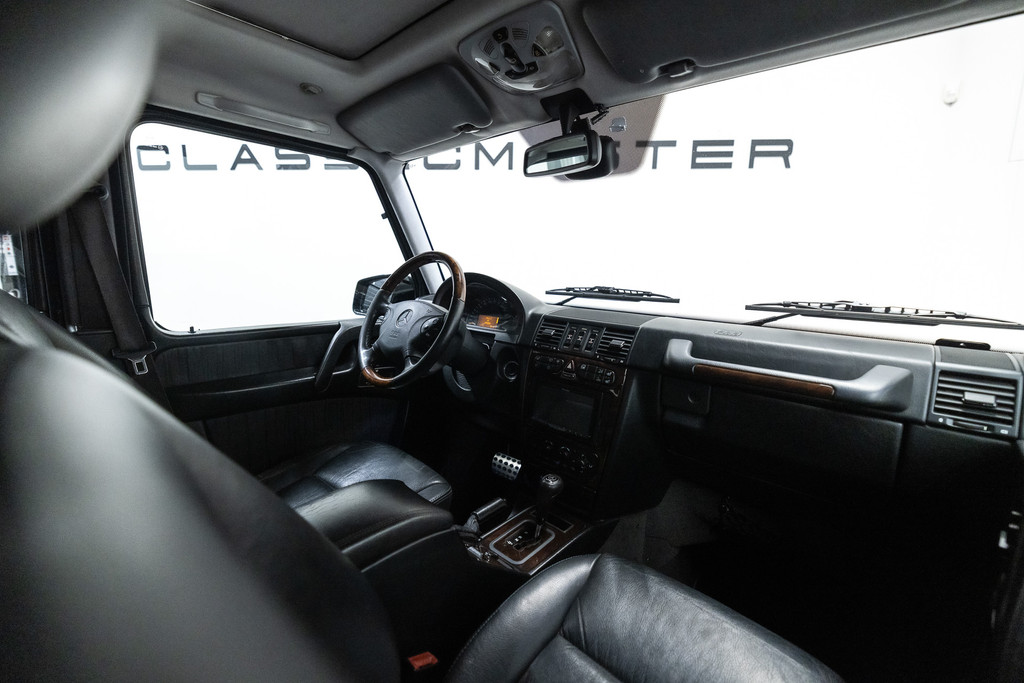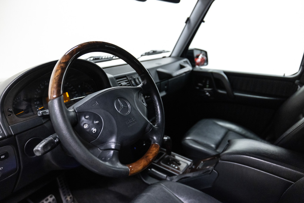 Originele Mercedes-Benz G-klasse 500 met G63 AMG Pakket uit 2003 te koop aangeboden. Het zwart kleurig lakwerk verkeert in een nette staat. Het origineel zwart lederen interieur verkeert eveneens in een nettestaat. De Mercedes G500 met G63 AMG Pakket is geheel roestvrij en is voorzien van vrijwel alle mogelijke opties af fabriek. Deze Mercedes-Benz G-klasse 500 met G63 AMG Pakket is zeer goed onderhouden en komt met haar originele service boekjes. De Mercedes G500 met G63 AMG Pakket is Bijtellingsvriendelijk (fiscale waarde € 22.000,-!) en de 21% BTW is verrekenbaar voor bedrijven!